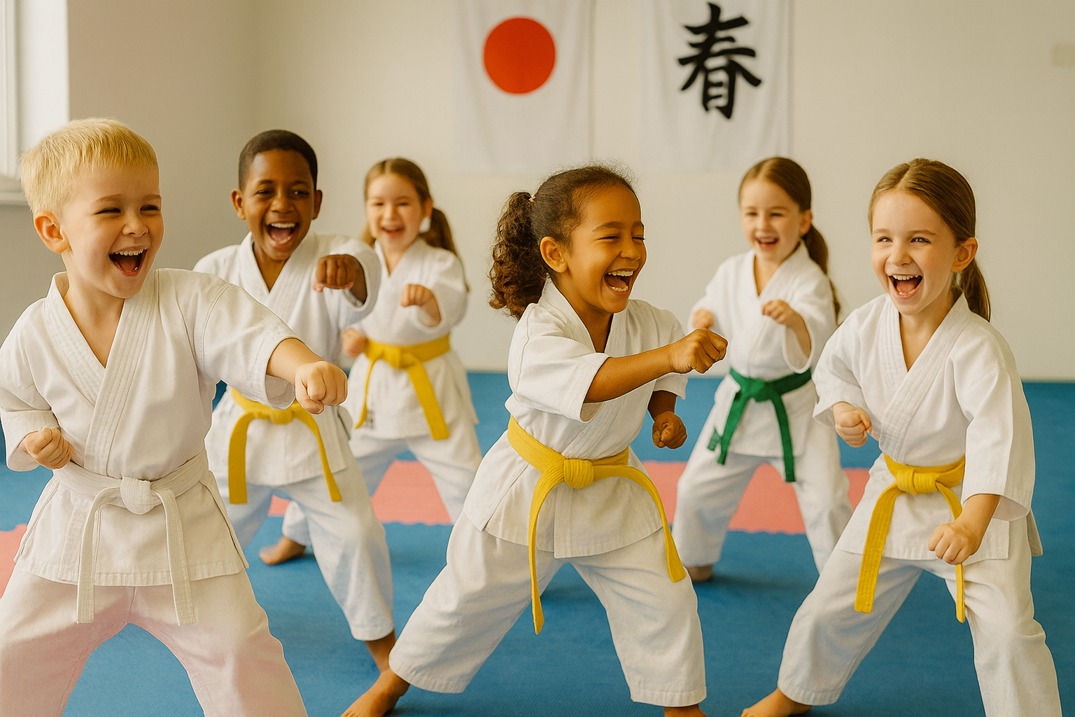 Crickets is our fun, age-appropriate introduction to karate for 4–6 year olds. Each class blends imagination games and movement drills to develop balance, agility, and body awareness while introducing safe dojo behavior, basic stances, simple blocks, and beginner strikes (to pads only). Activities are short, upbeat, and varied to keep young students engaged, with a big focus on respect, self-control, and teamwork.